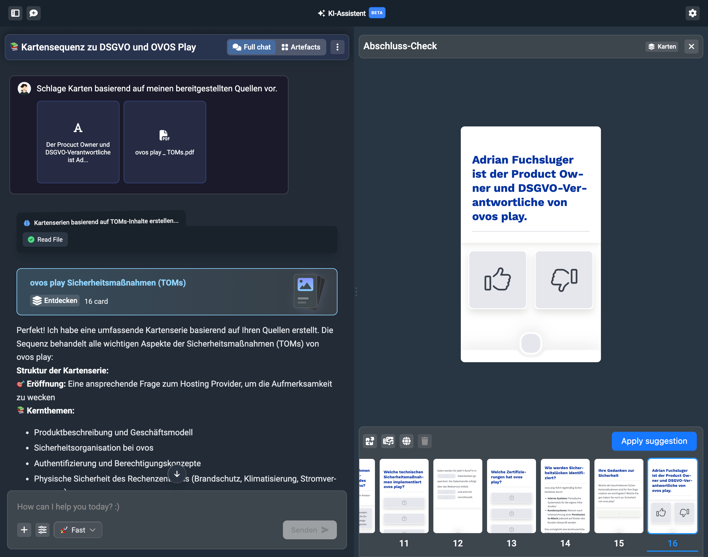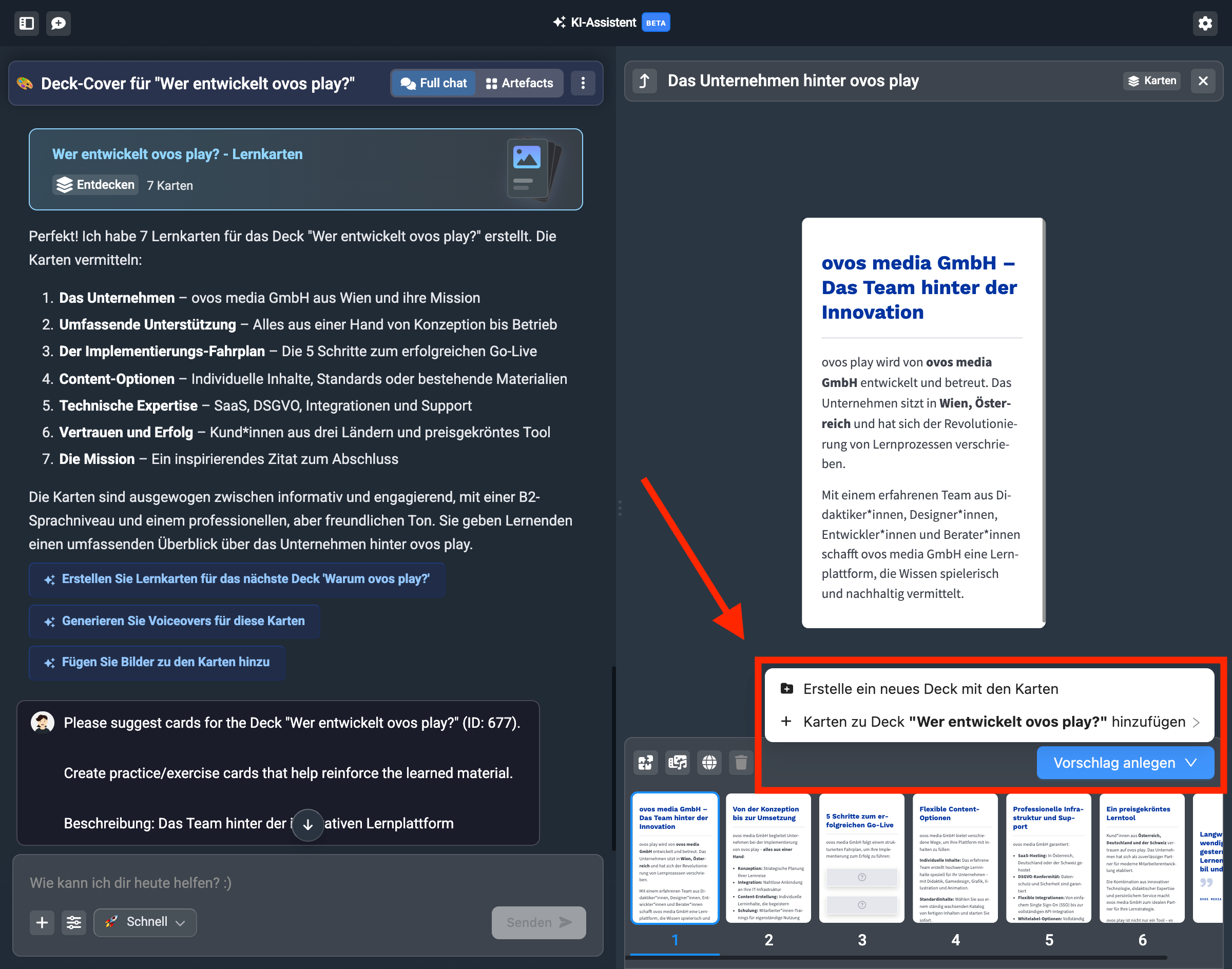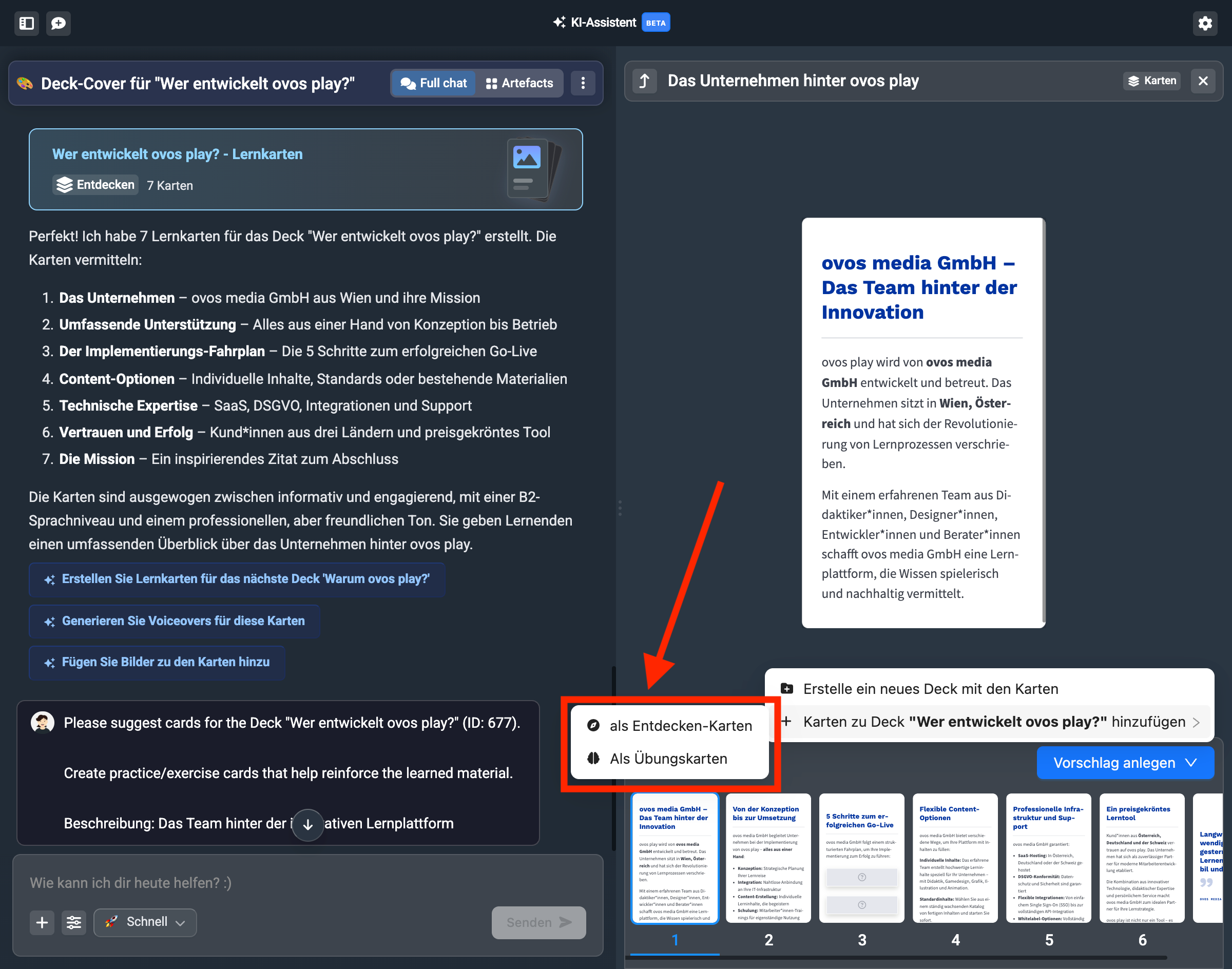 Das Best Practice-Beispiel in ovos play. Der Assistent generiert ein spannendes und interaktives Lernerlebnis.