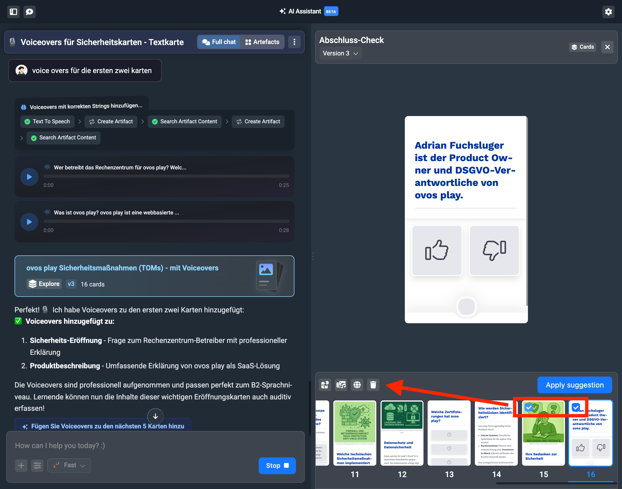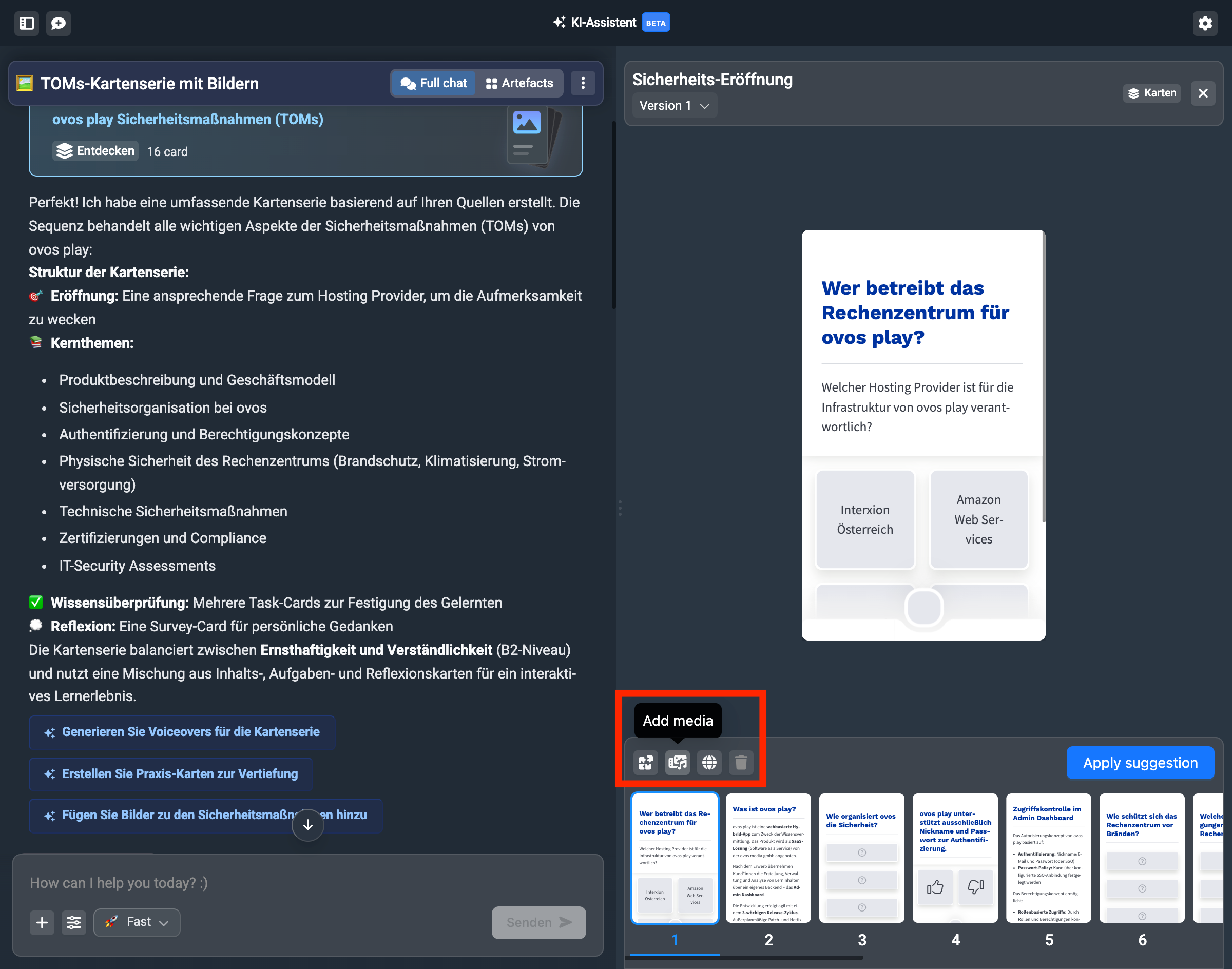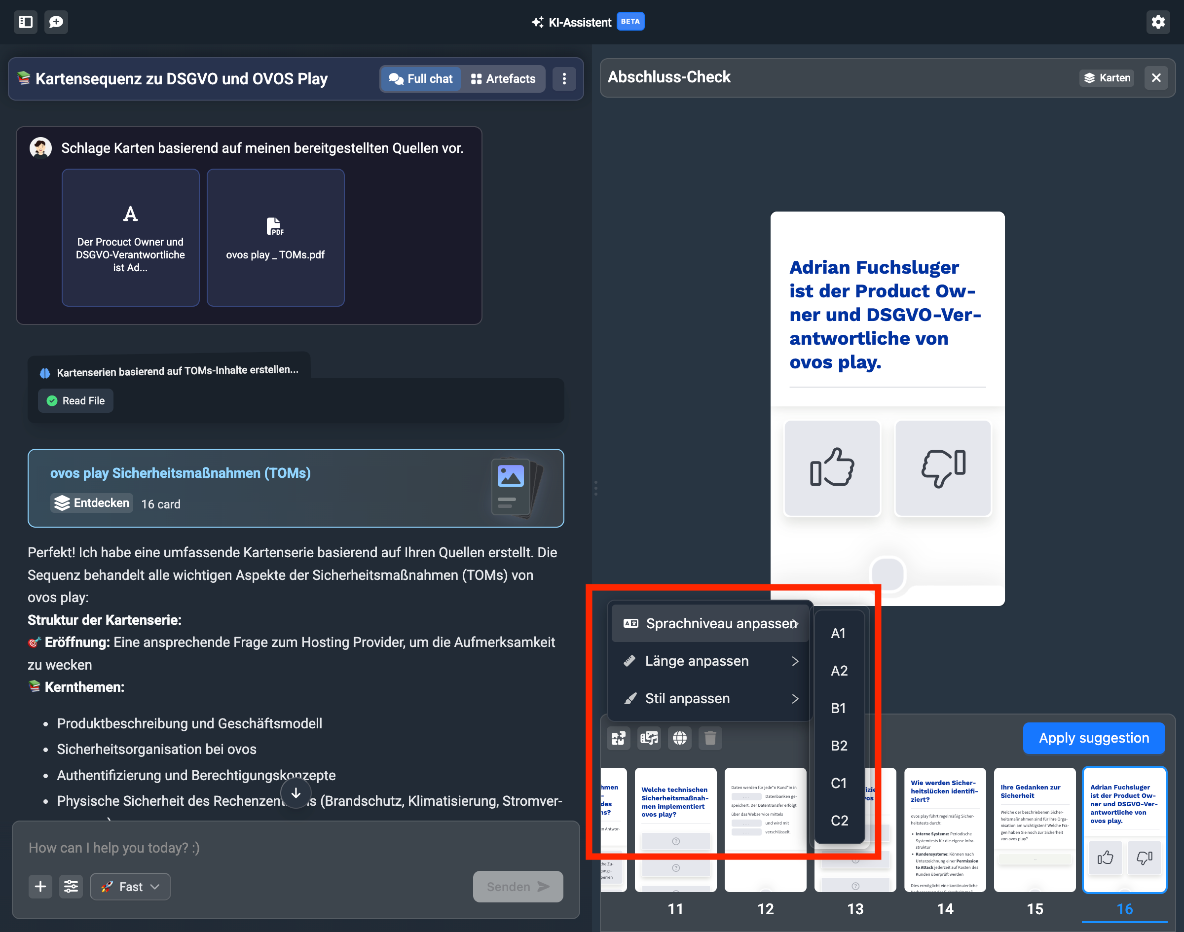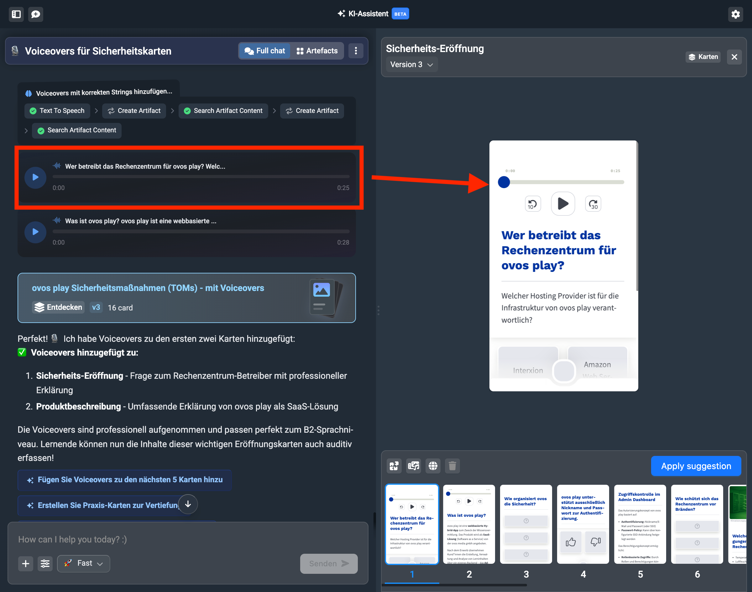 Das Best Practice-Beispiel in ovos play. Der Assistent generiert ein spannendes und interaktives Lernerlebnis.